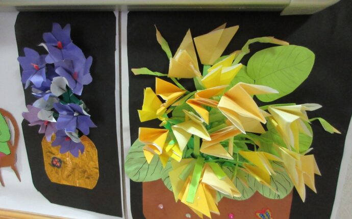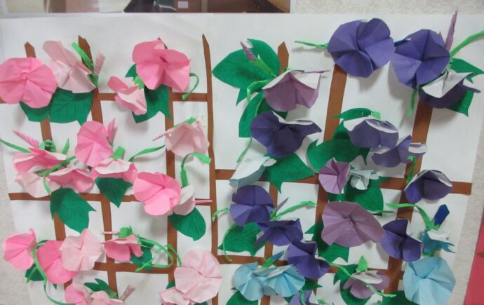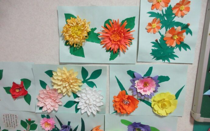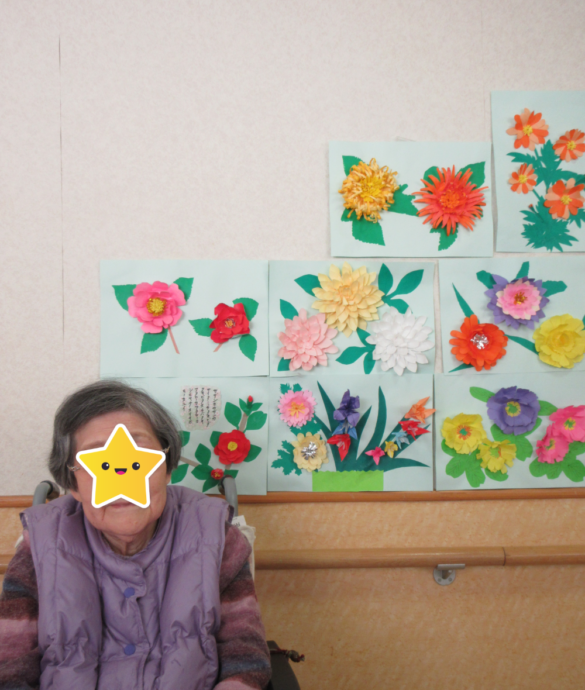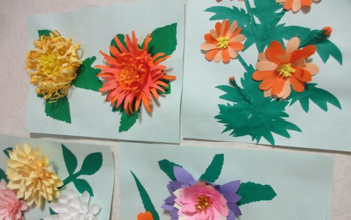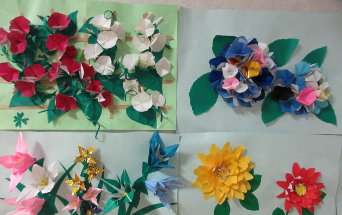 よく高速道路のサービスエリア等にて、素敵な折り紙作品を目にしますが、愛光園でも色画用紙で素敵な花を作られる利用者様。