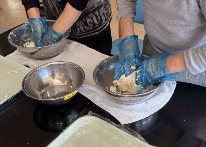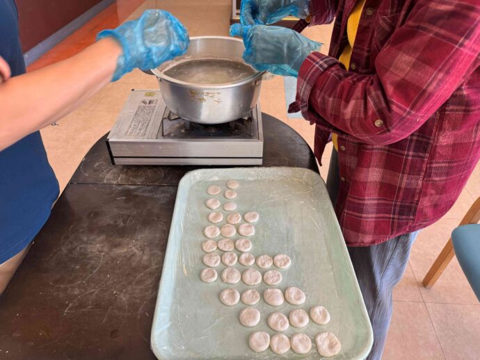 生地を作る工程から、茹でて、きな粉を塗す工程までを利用者様と行いました!!