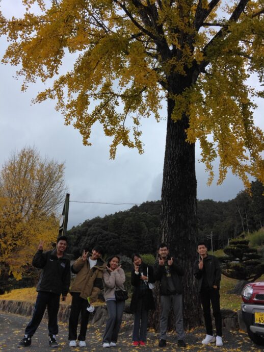 【甘木愛光園】大銀杏をバックにハイポーズ