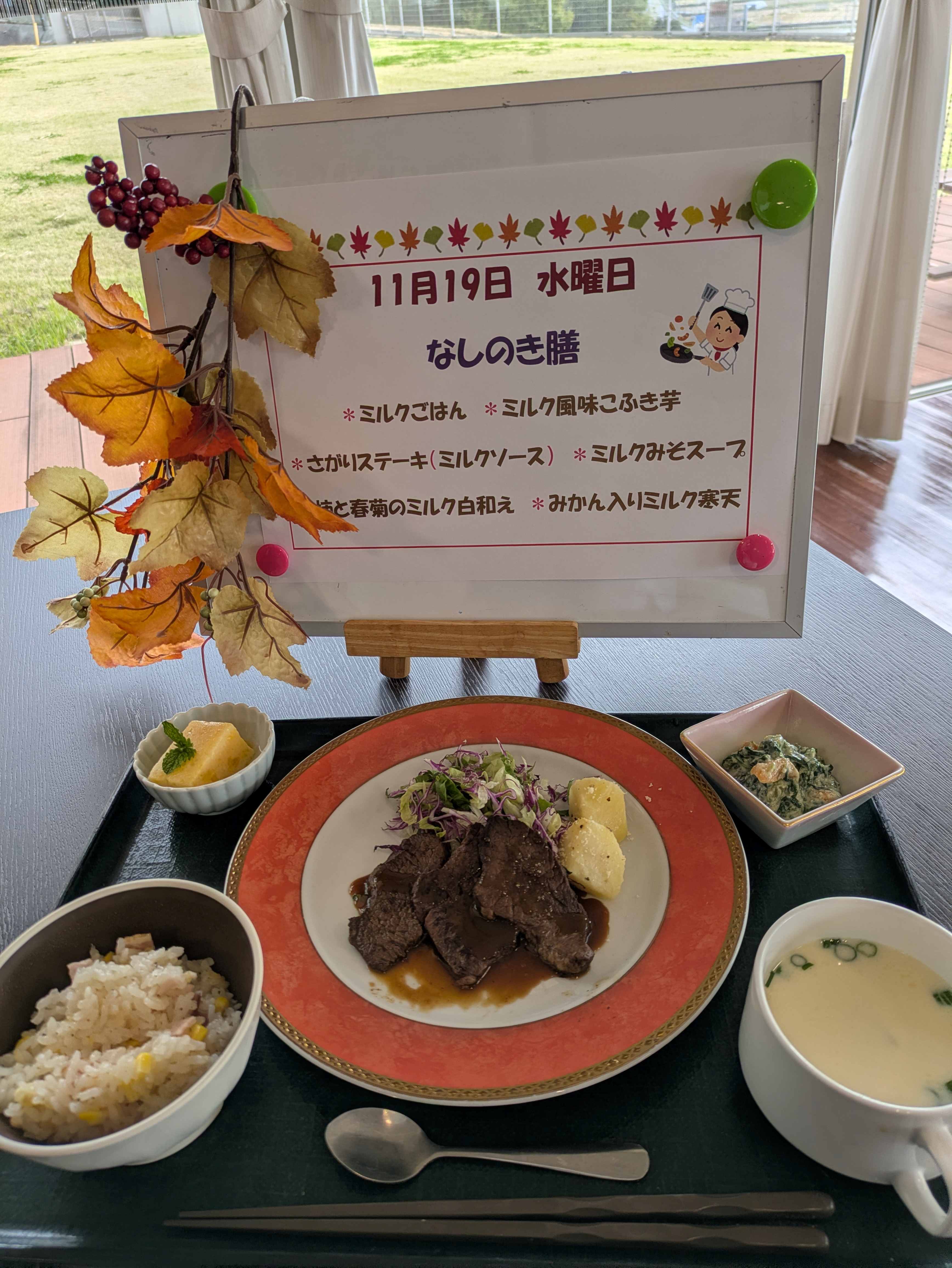 ご飯にもスキムミルクを入れ、ステーキソースもミルク入りで カルシウム、タンパク質豊富なメニューでした✨✨