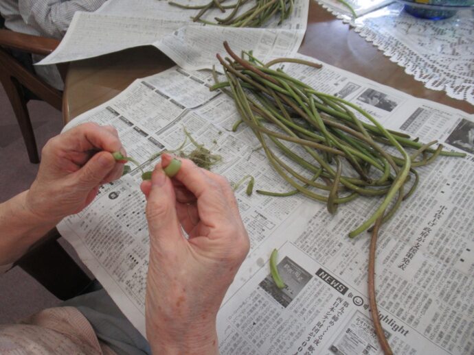 皆様に『芋づる』の皮むきを手伝って頂きました🖐️🖐️