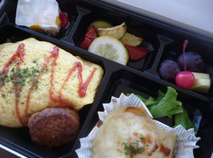 「温泉とお弁当 癒しの日」の厨房さん手作りお弁当です。梨ノ木城の天然温泉をゆ~ったり堪能され、夕食はいつもより早めにご準備いたしました。時間を忘れのんびりした一日を過ごされ入居者様も満足されてありました☺