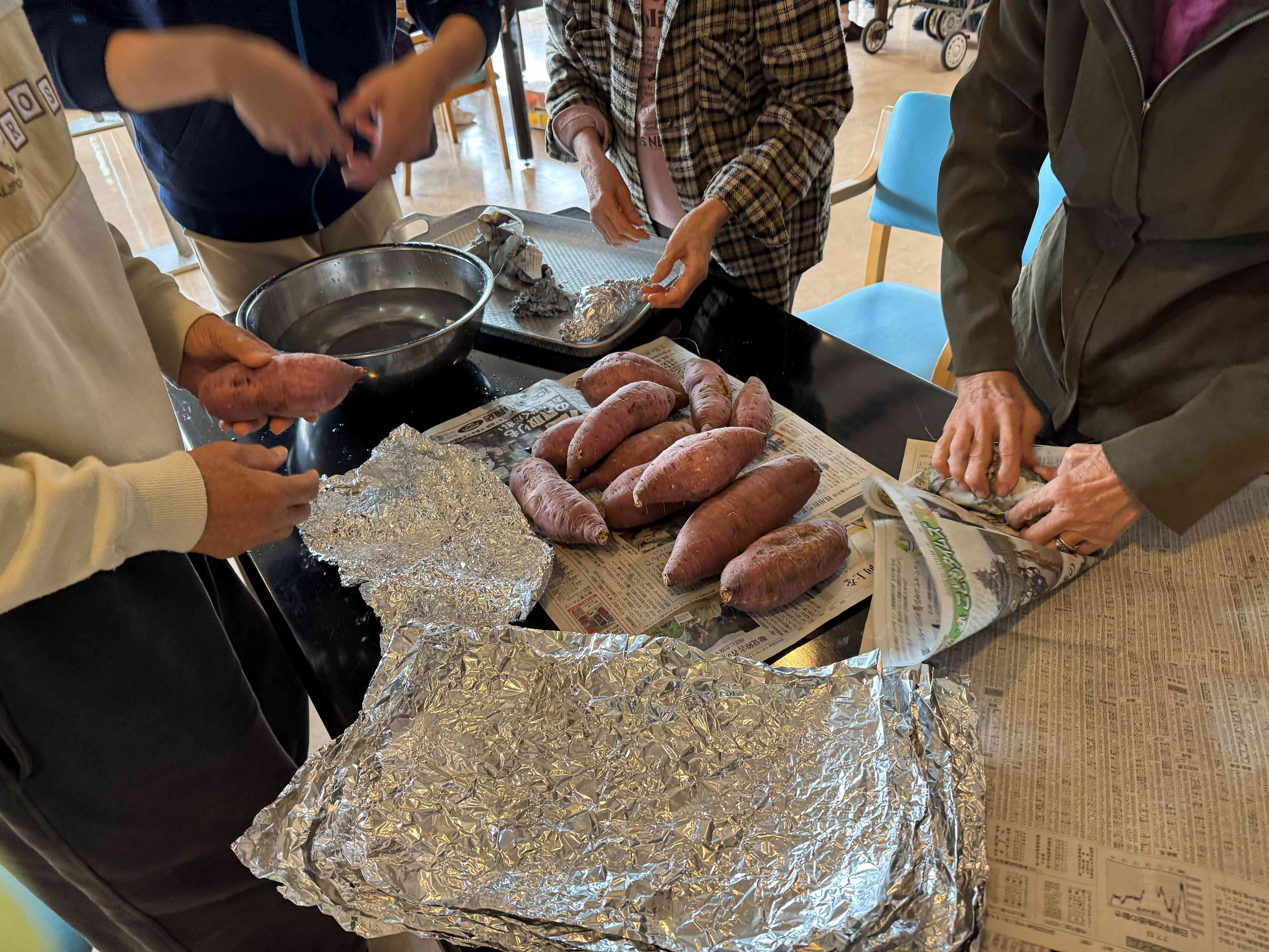 この日は、焼き芋を食べるのには持って来いの寒さで、利用者様も芋が焼きあがるのを楽しみにされていました。