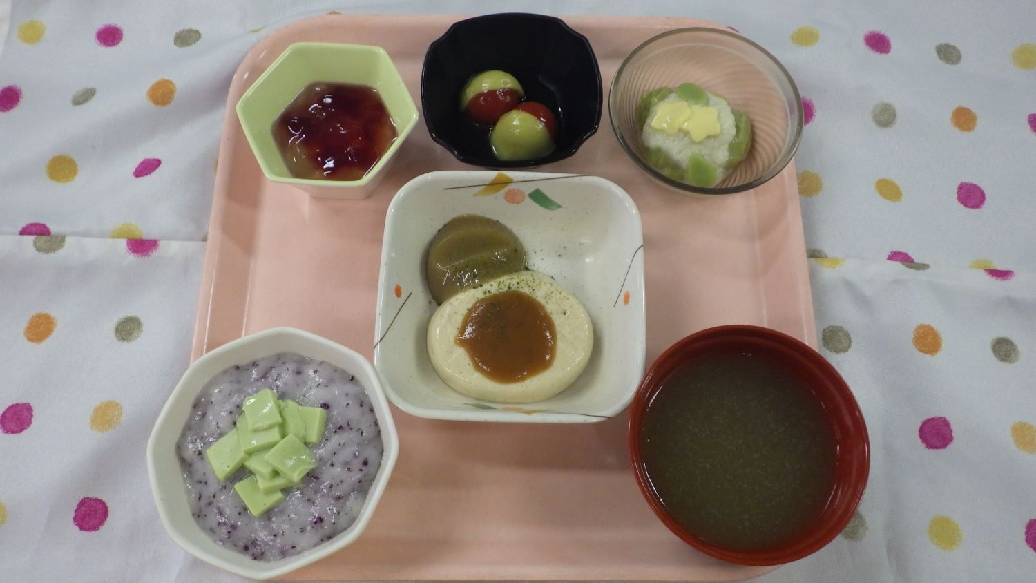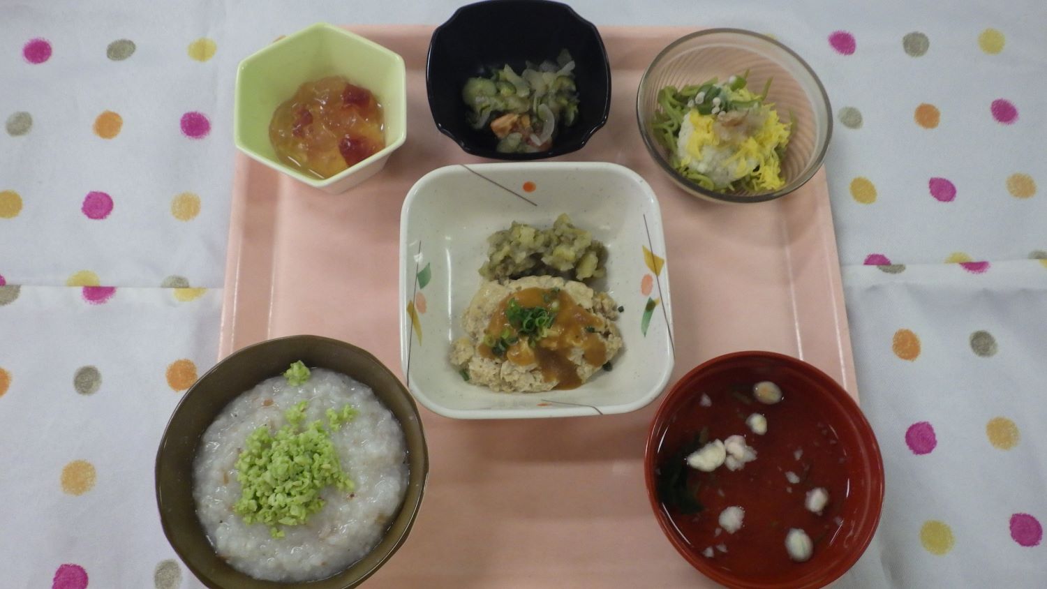 いろいろな食事形態の利用者様がいらっしゃいますが、旬の食材を皆さん、楽しんで召し上がられていました。