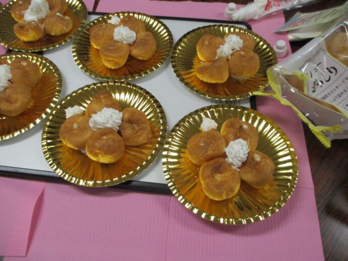 今年はプチシュークリームを使ったお菓子を提供したのですが、あっという間に召し上がられました。😋