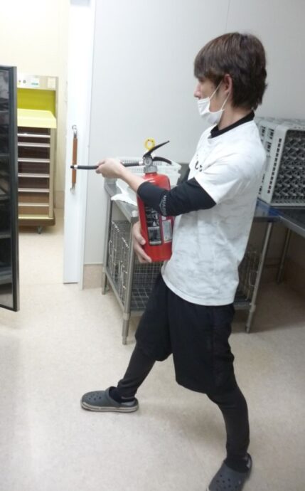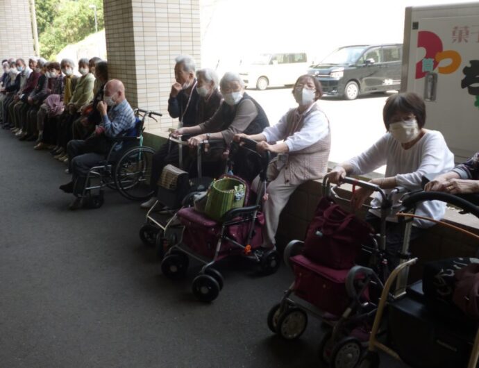 5月20日、梨ノ木城で火災訓練を実施しました。火災発生の放送が入ると職員の誘導で、入居者様、デイサービスの利用者様とも落ち着いて火元から遠くに避難されました。