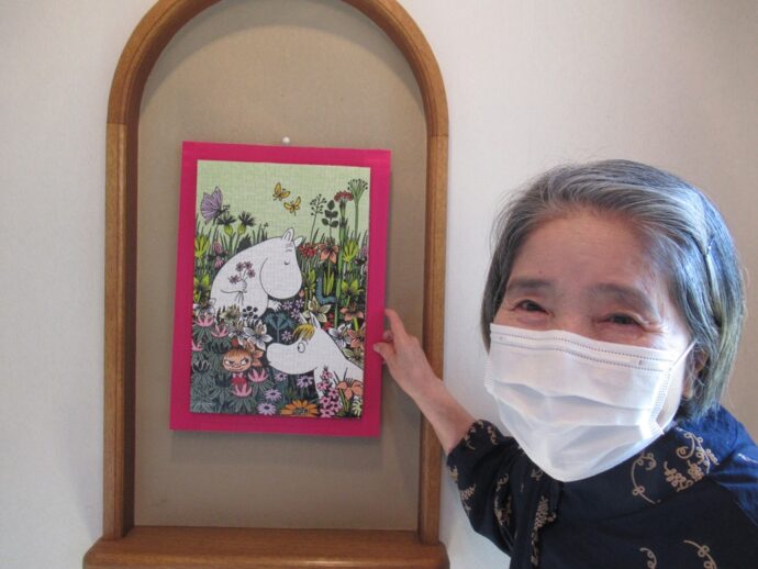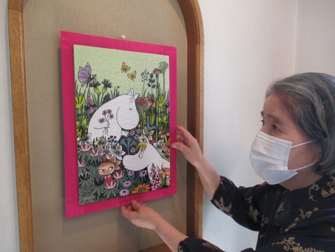 作品はご入居者様が、趣味のジグソーパズルの300ピースをコツコツと作られ、メールボックスルームに飾って下さいと提供してくださいました💛❤