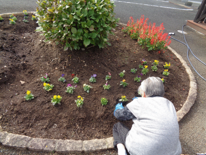 植えた後も毎日の散歩の時に、水をやったり見て楽しまれています。