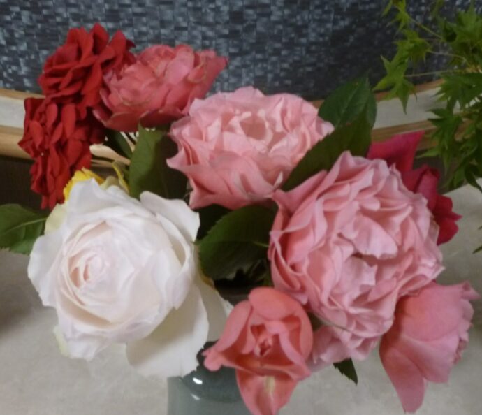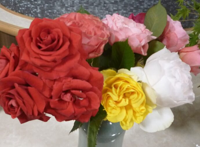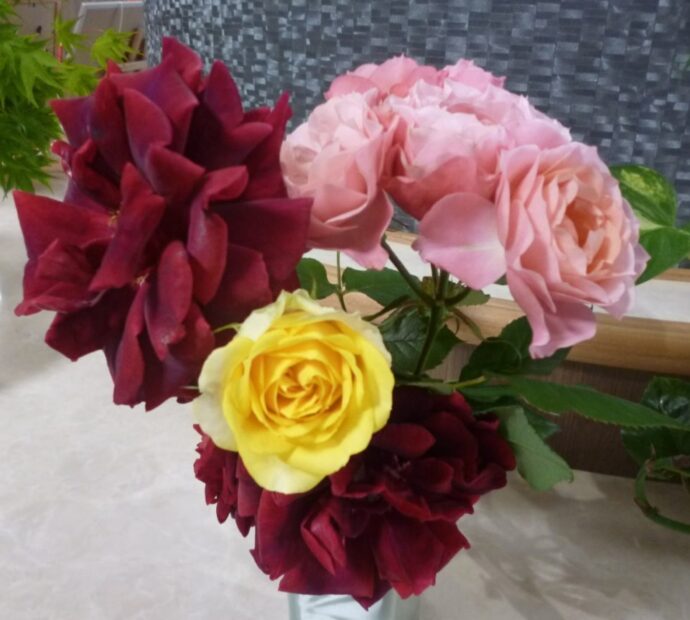 入居者様の娘様から「オレンジメイアン」というバラの花を頂きました。「花びらが散りにくいバラなんです」と梨ノ木城のことを思って選んで頂いたバラです。自宅には40種類ほどのバラが咲いているそうです。