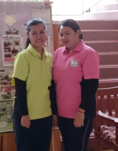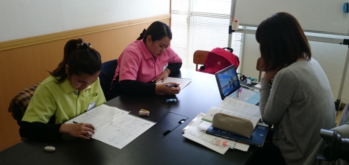 今回、受けた候補生は平成28年度候補生のジーンさんとソルマリーさんです。好きな言葉をそれぞれ上げる場面があり、ジーンさんは「笑顔」、利用者だけでなく周りの職員みんなと自分自身の笑顔が生まれるようにとソルマリーさんは「休み」、仕事と勉強にがんばるためにリフレッシュが大切という意味で上げましたと