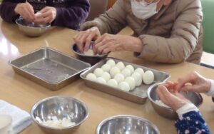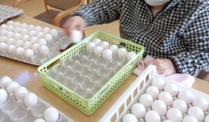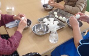 早速、茹で上がった卵の殻をむく作業です