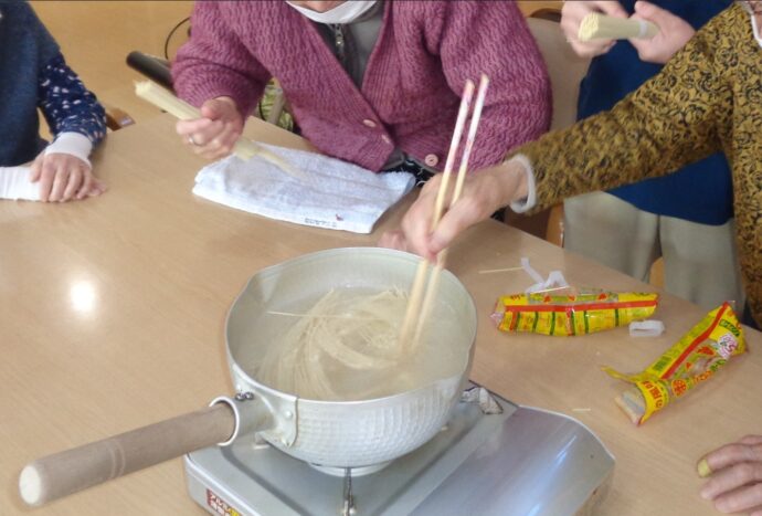 🍜ラーメンは利用者、職員で準備して食べます。