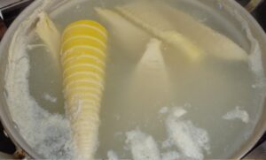 大きな鍋で湯がき、調理して