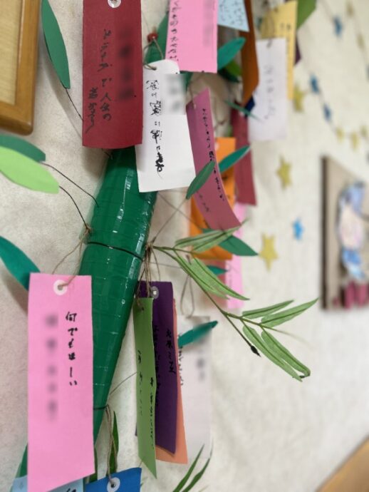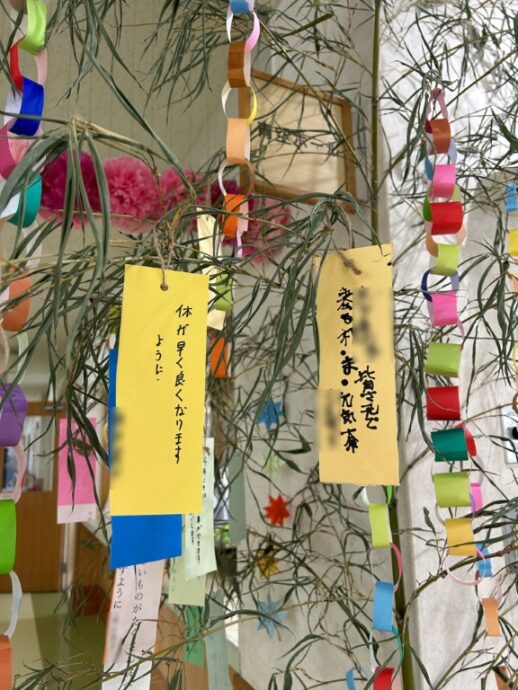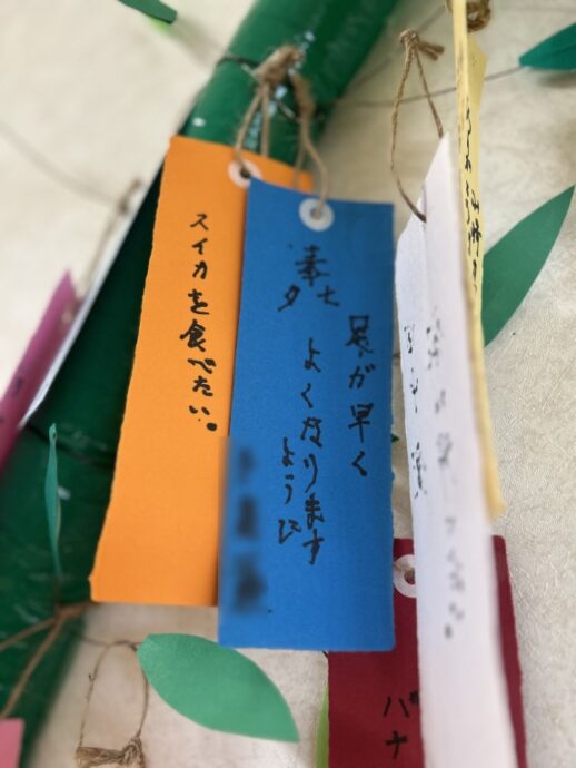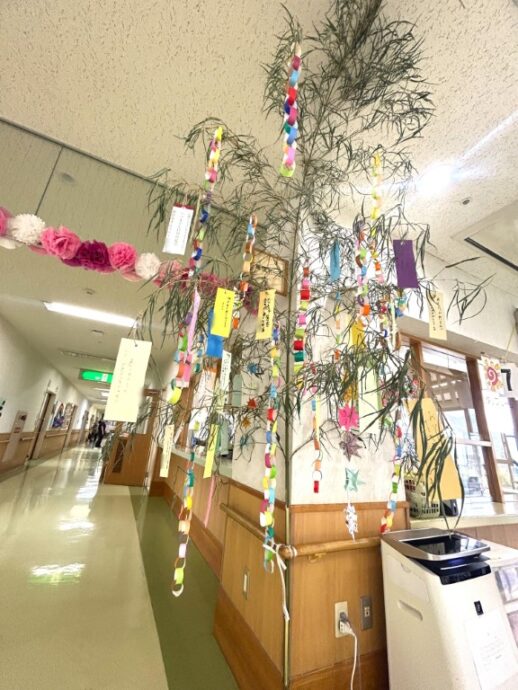 日は七夕☆彡 ラ・パスには現在、各階に七夕飾りを設置しています。利用者様みなさま、一所懸命にお願い事を書いてくださいました☆彡