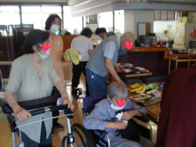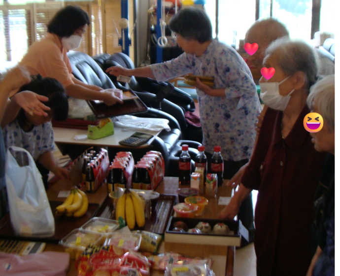 売店が開店するとしっかり吟味しながら購入されていました。衣類や職員手作りの箱に飴玉は、予約がはいるほどでした。