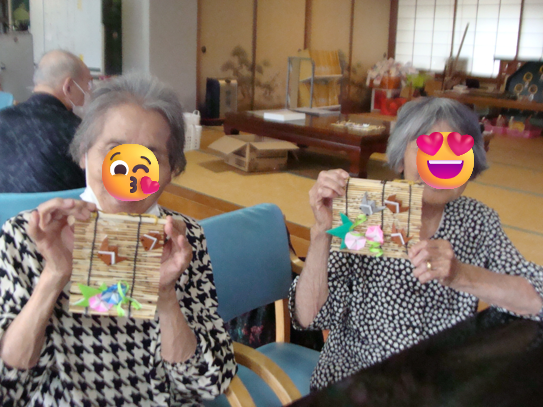 利用者の自宅にお迎えに行くと玄関入り口に飾られていました。本人様も『素敵でしょ』と自慢げでした。ミニすだれを提案した職員もうれしいことでしょう💕